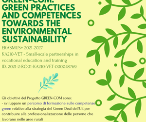 Il percorso specialistico (della durata di 40h) è una delle tante attività previste dal progetto E+ KA2 "Green-Com" promosso da eCONSULENZA e da Unpli Piemonte, dedicato ai temi green e alla transizione verde. Esso è stato avviato il 1° maggio 2022; vedrà attività di Study Visits e un Multiplier Event sia in Italia che in Romania nel 2023.